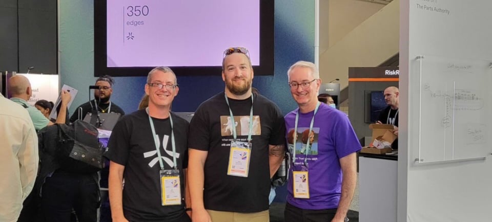 We were recording a live episode of the No Trust Podcast from our booth on the show floor. The booth had attracted a small crowd of people listening to the conversation and watching the recording take place.